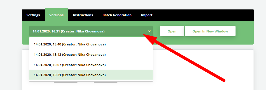 Unlike template Versions, there is no version history for Translations. Translations are only available for the current saved version of a template.