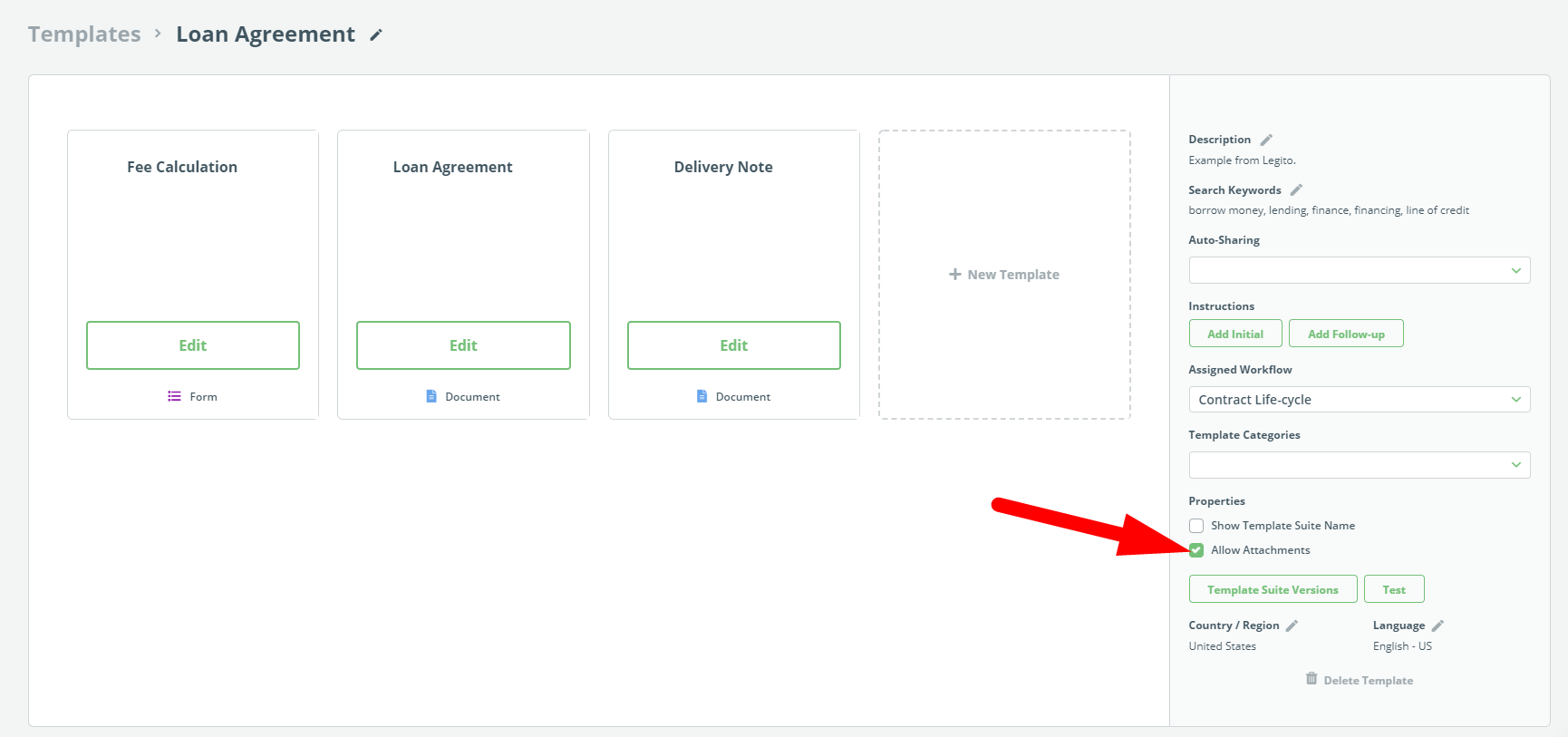Settings allowing attachments to be added to a Document or Form, are found in the Template Suite Administration area. Simply check “Allow Attachments”.