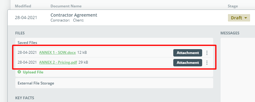 It’s now possible to add attachments (upload files) to Legito Documents and Forms. All commonly used file types can be attached (PDF, Word, Excel, PNG, JPEG, ZIP, ODT, etc.).