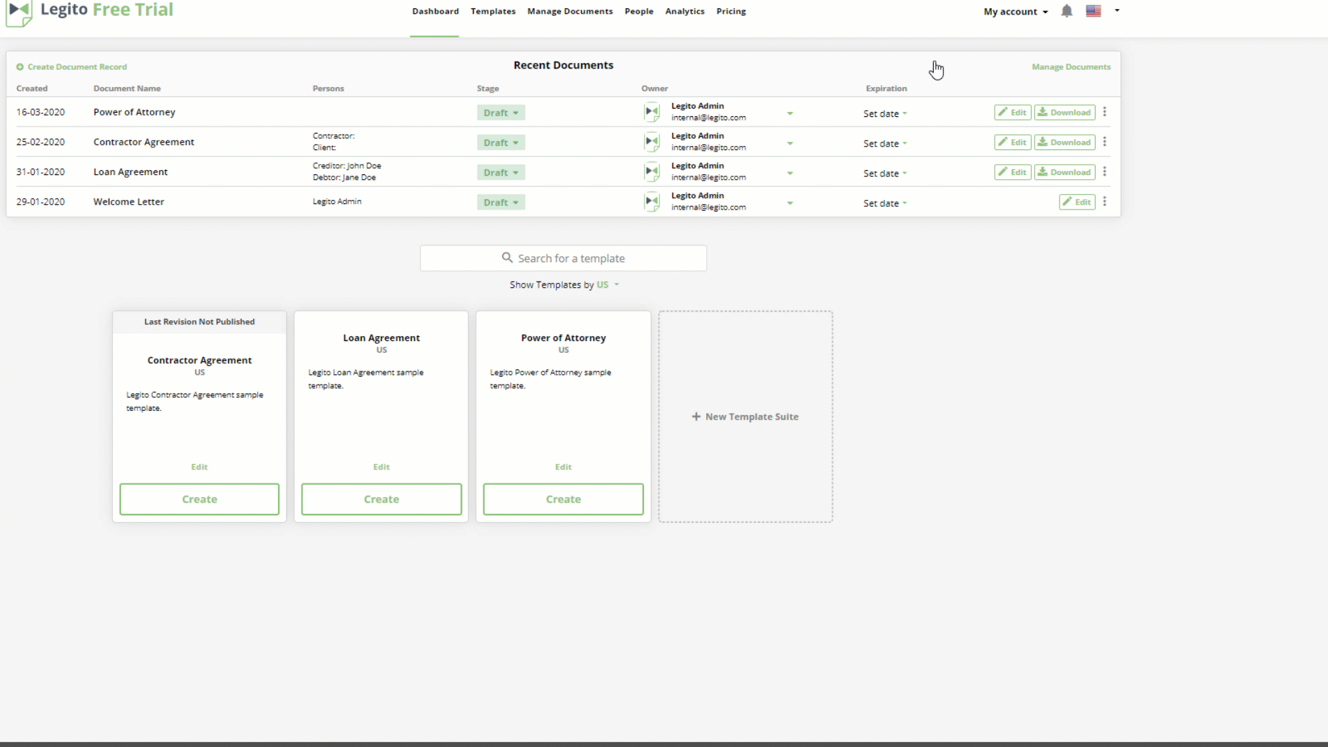 Legito offers 5 preconfigured integrations for commonly used software. These integrations work with Legito Template Tags to import data, export data, or enable an electronic signature.